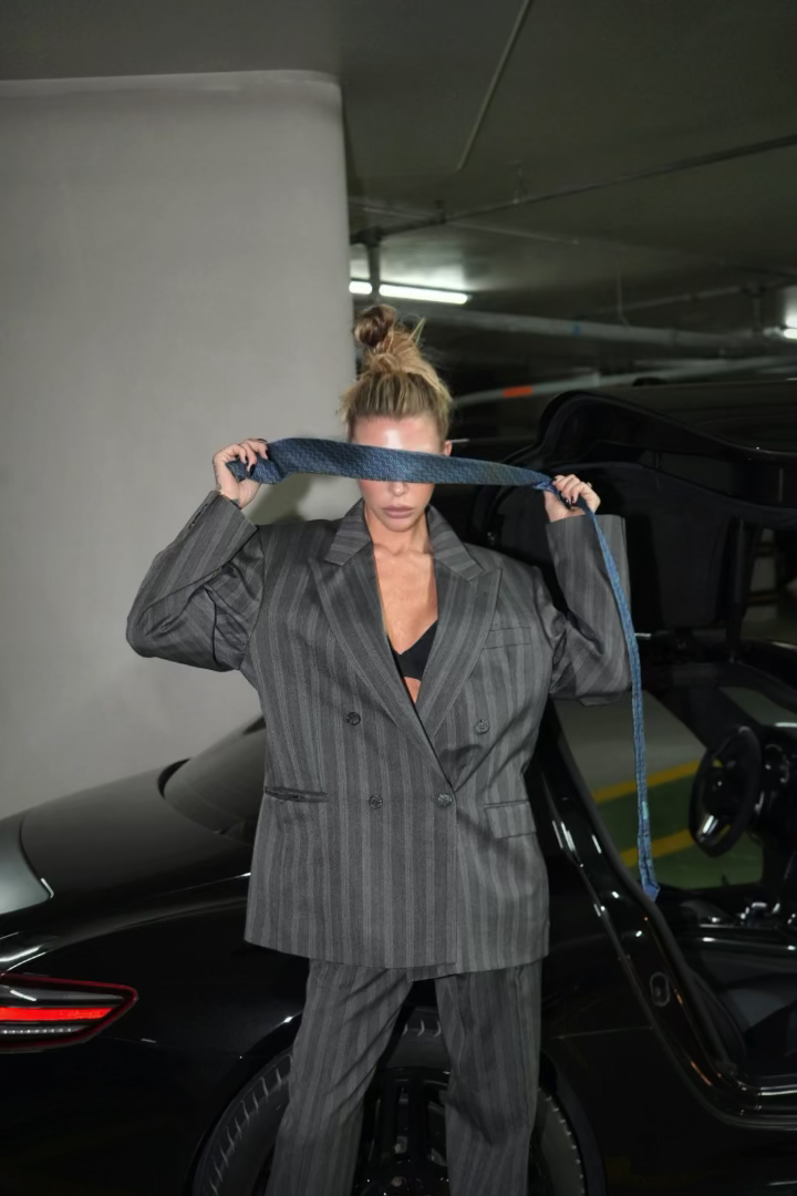 This oversized pinstripe trouser suit combines classic tailoring with contemporary volume, delivering a sophisticated yet relaxed silhouette. Crafted for comfort and style, the suit features bold vertical stripes that elongate the figure and create a commanding presence.